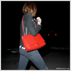 THESE ARE SNAP SHOTS OF FASHION STUFF I SEE WHILE OUT ON THE STREETS ! A girl with a bright , Red bag leaving #TheNiceGuy in Los Angeles, Ca.